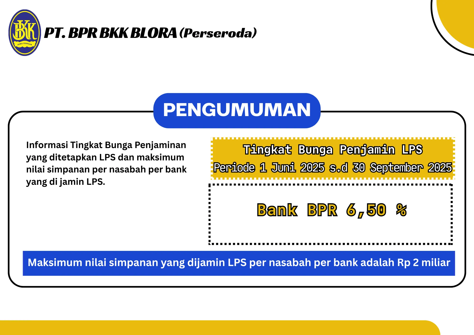 PT. BPR BKK Blora (Perseroda) menawarkan layanan perbankan yang terpercaya, bunga kompetitif, dan solusi keuangan yang disesuaikan dengan kebutuhan Anda. Kami selalu mengutamakan kepuasan dan kemudahan transaksi untuk mendukung tujuan finansial Anda