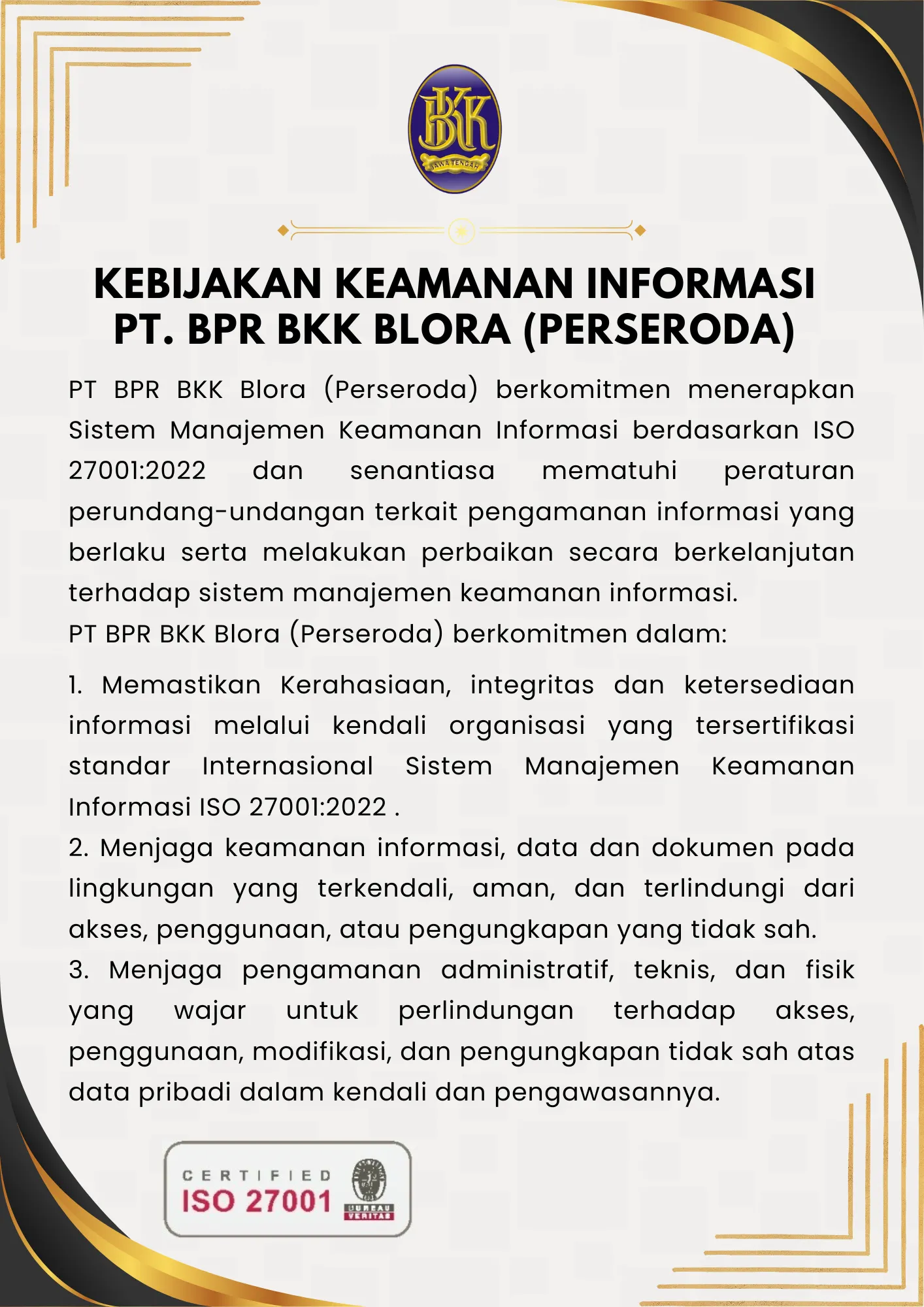 KEBIJAKAN KEAMANAN INFORMASI PT BPR BKK BLORA (Perseroda)